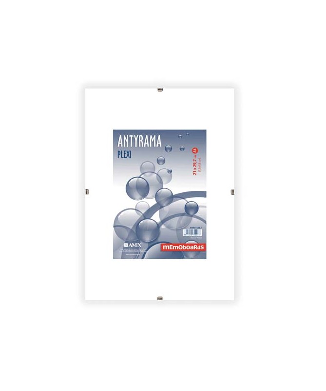 Antyrama od firmy Memoboards wykonana jest z pleksi o grubości 0,85 mm, obustronnie oklejona folią ochronną. Tylna płyta wykonana z twardego HDF o grubości 3 mm, odporna na odkształcenia i uszkodzenia. Antyrama to doskonały element dekoracyjny dla każdego wnętrza domu, biura czy restauracji.