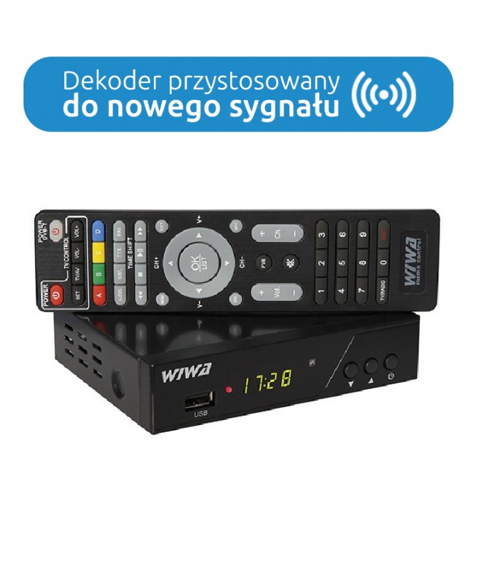 Nowoczesny tuner drugiej generacji WIWA H.265 PRO obsługuje darmowe kanały nadawane w naziemnej telewizji cyfrowej w najnowszej technologii H.265/HEVC. Jest to standard, który będzie obowiązywał w Polsce. Tuner jest kompatybilny ze starszymi technologiami H.264 i MPEG-4, które są aktualnymi standardami nadawania w Polsce. Tuner jest sterowany pilotem z funkcją Memo Control (programowalne przyciski umożliwiające obsługę dekodera i odbiornika TV jednym pilotem). Na przednim panelu sprzęt posiada czytelny cyfrowy wyświetlacz z funkcją zegara podczas uśpienia oraz podstawowe przyciski funkcyjne. OSD w języku polskim wyświetlane na ekranie telewizora jest przejrzyste, intuicyjne i łatwe w obsłudze. Całość zamknięta w solidnej metalowej obudowie.