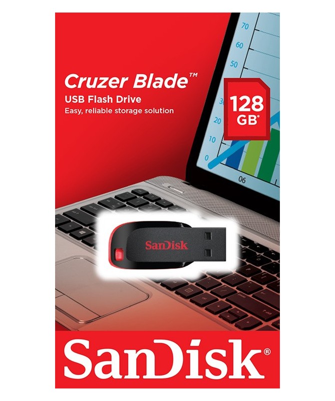Pamięć USB 128 GB Cruzer Blade™ mimo niewielkich rozmiarów posiada wystarczającą ilość miejsca potrzebną do przechowywania i udostępniania muzyki, zdjęć i domowych nagrań wideo – lub prezentacji i arkuszy kalkulacyjnych – w dowolnym momencie. Pomimo pojemności 128 GB i poręcznego wykonania podkreślonego estetycznymi konturami, pamięć USB Cruzer Blade jest o połowę mniejsza niż większość innych pamięci USB. Pamięć ta gwarantuje również bezpieczeństwo zgromadzonych na niej prywatnych danych dzięki ochronie hasłem oraz szyfrowaniu za pomocą programu SanDisk SecureAccess™.