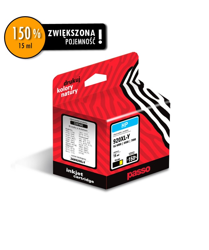 Tusz Passo do HP OJ 6000 | 6500 | 7000 Yellow ZAH920XL-Y (CD974AE) 15 ml